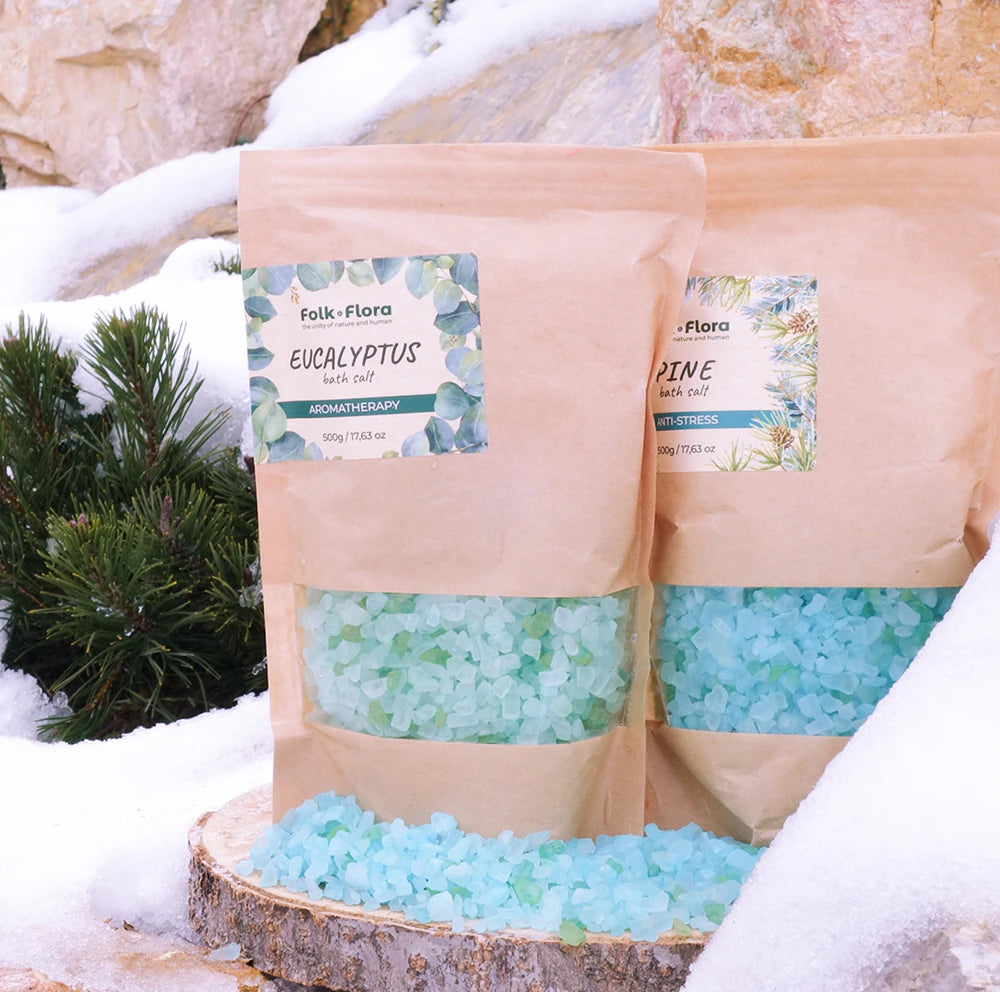 Das Badesalz Folk & Flora Eucalyptus bringt Ihnen Entspannung und Wohlbefinden bei Ihrem täglichen Bad.